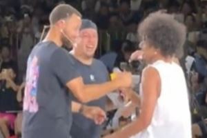 体育资讯8月20日讯 库里在重庆开启中国行,库里品牌签约的首位中国球员朱正一同参加活动。