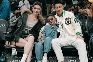 凯尔特人小老板何猷君今日更新动态,携老婆奚梦瑶以及儿子Ronaldo一同观战绿军揭幕战。