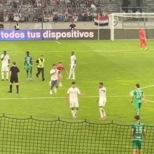 宠粉!球迷冲入场内找姆巴佩自拍,姆总拦住保安满足合影