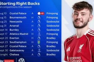 此役布拉德利担任利物浦首发右后卫,据天空体育统计,本赛季利物浦没有任何右后卫连续4场首发。